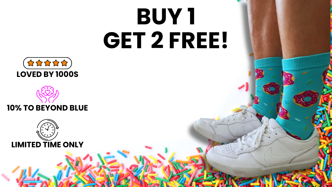 At Bubblegum Co. we make socks that turn heads and do good. 10% of every pair sold supports Beyond Blue, helping Aussies facing mental health challenges. Bold on your feet, big on impact...because life’s too short for boring socks or small missions!